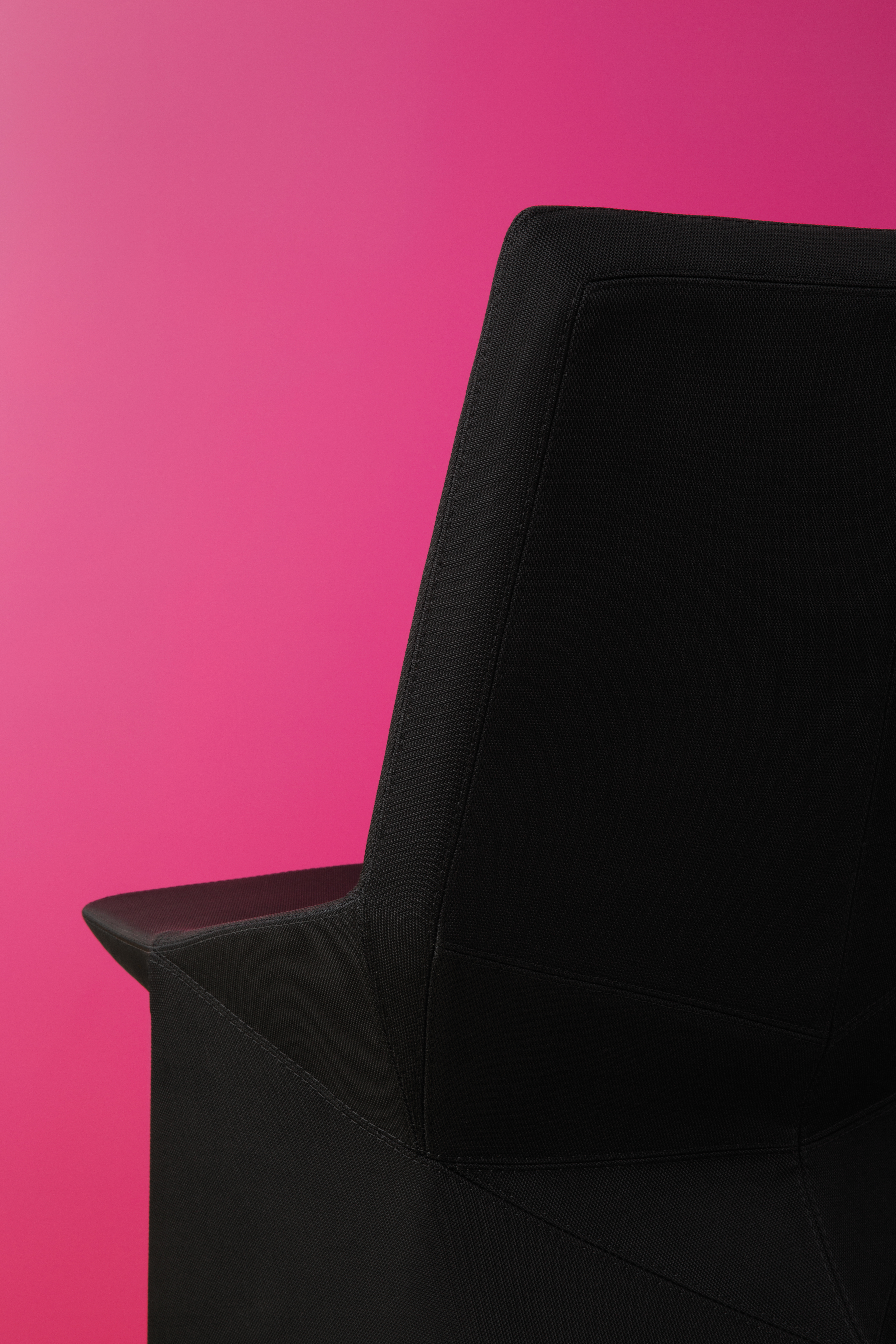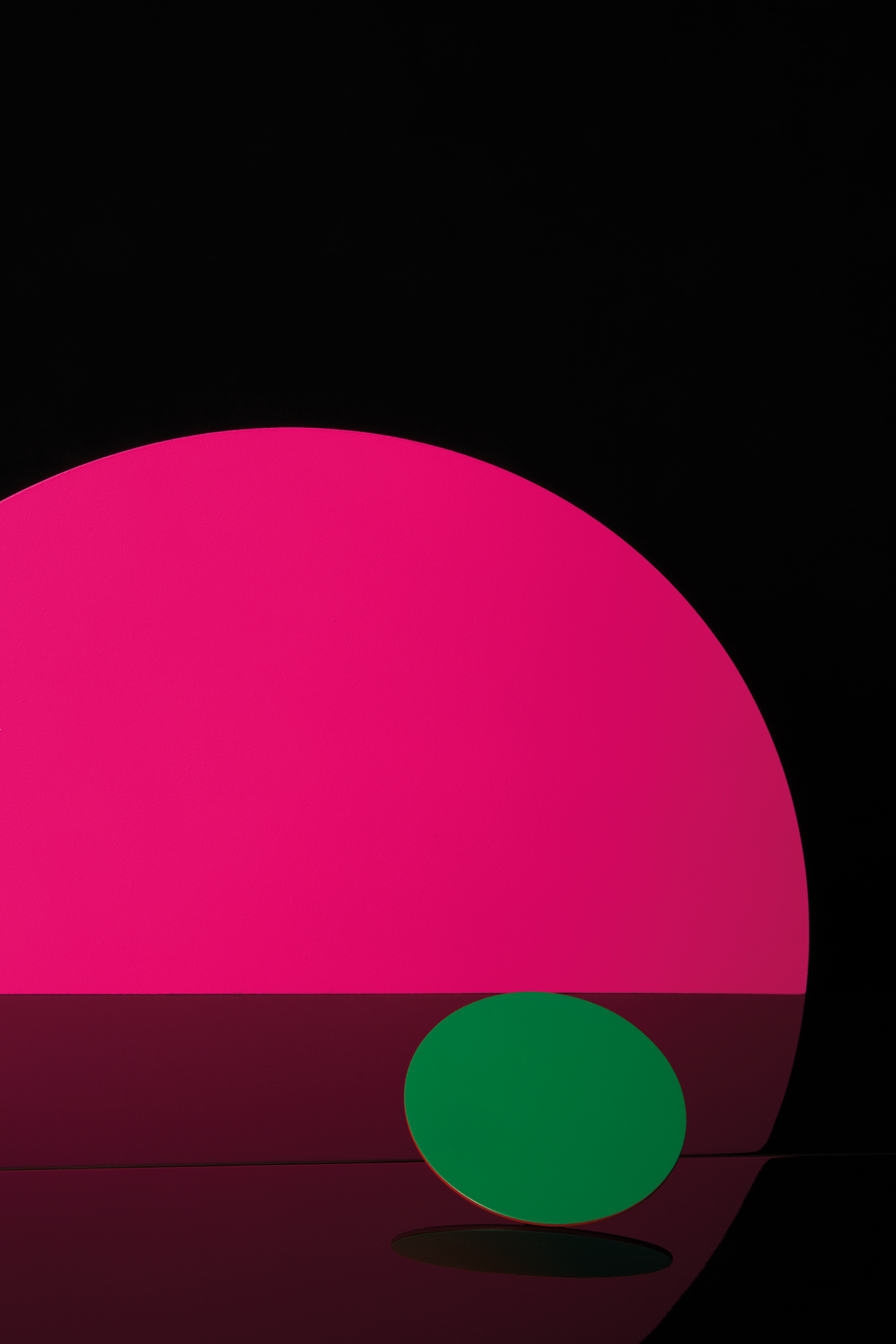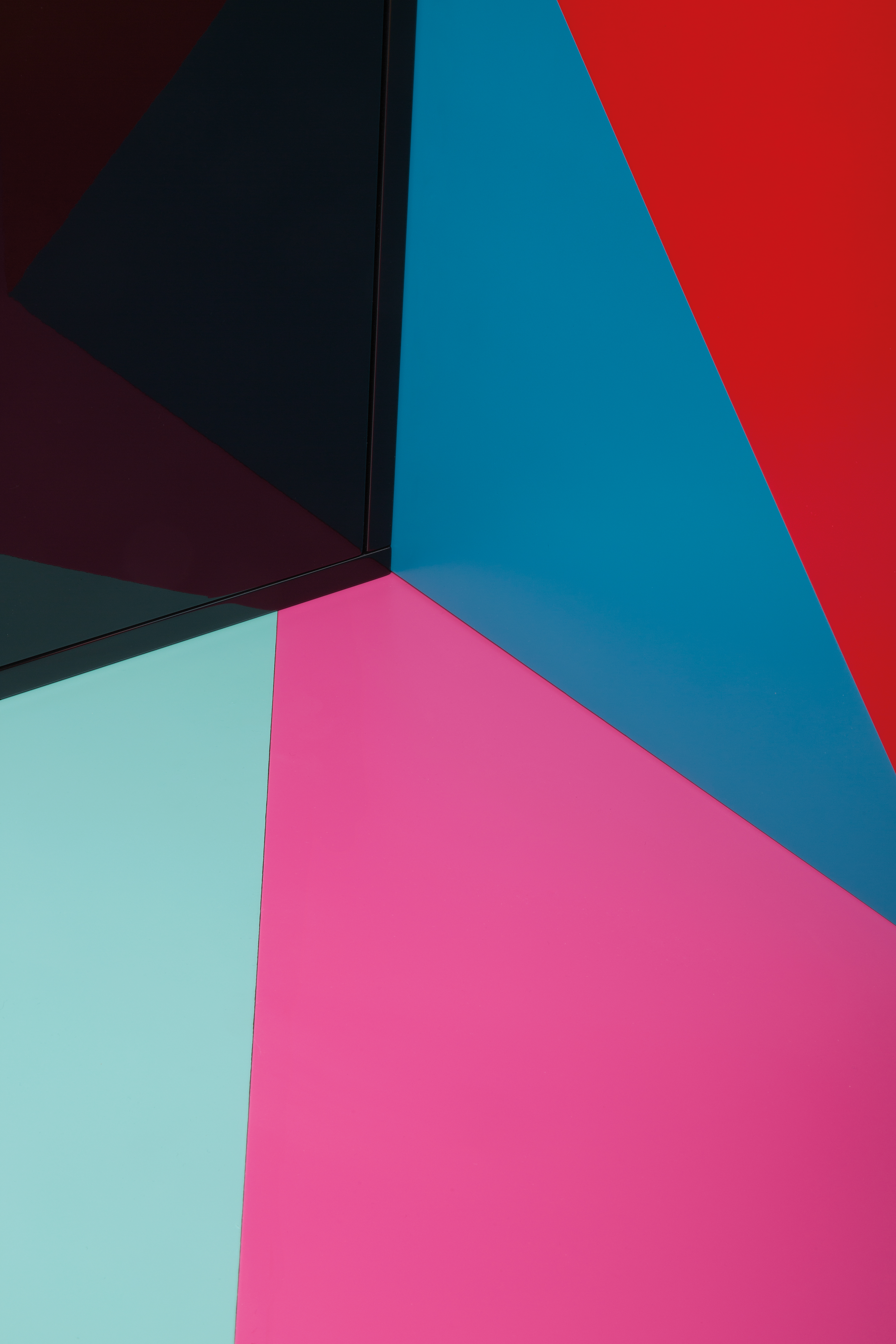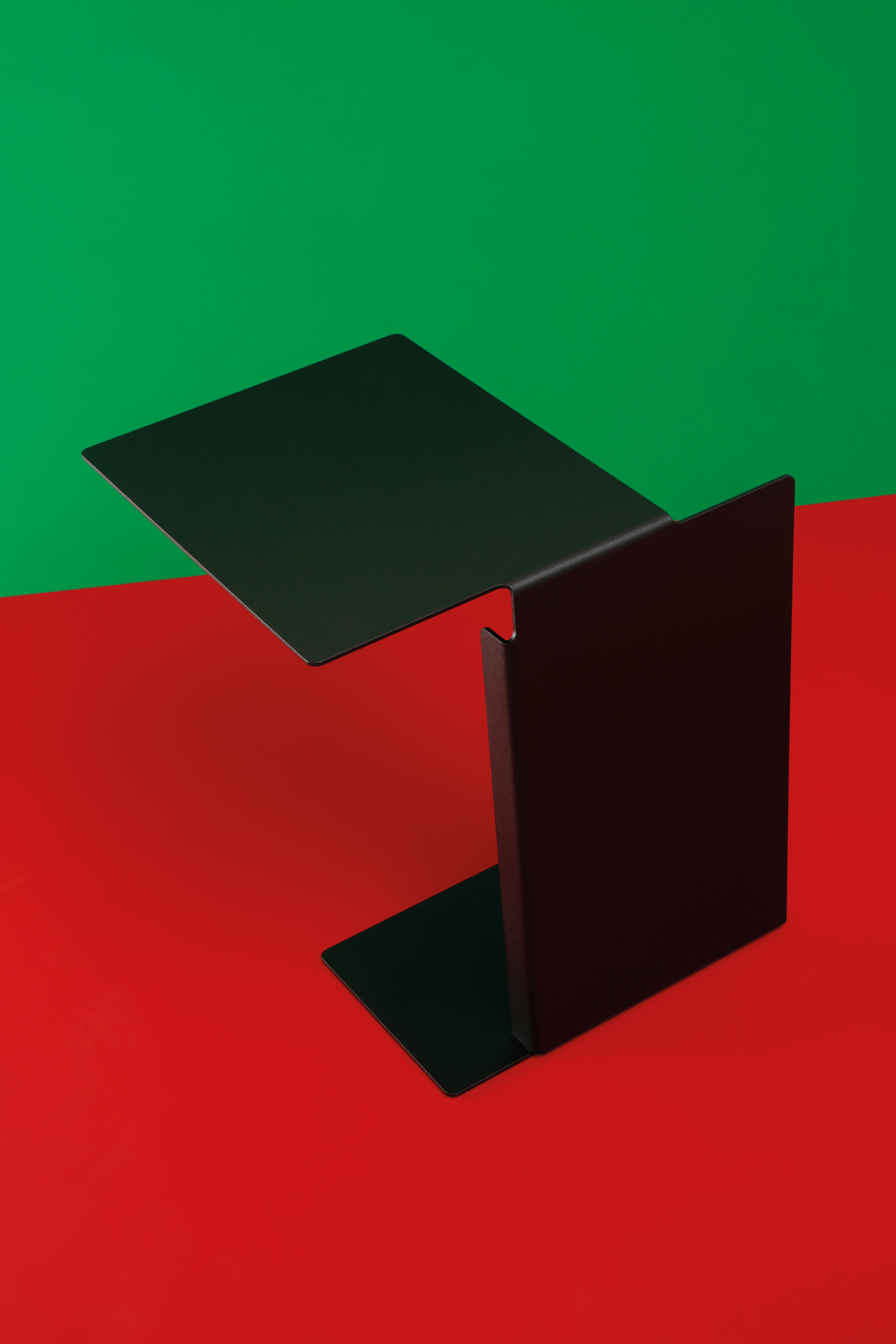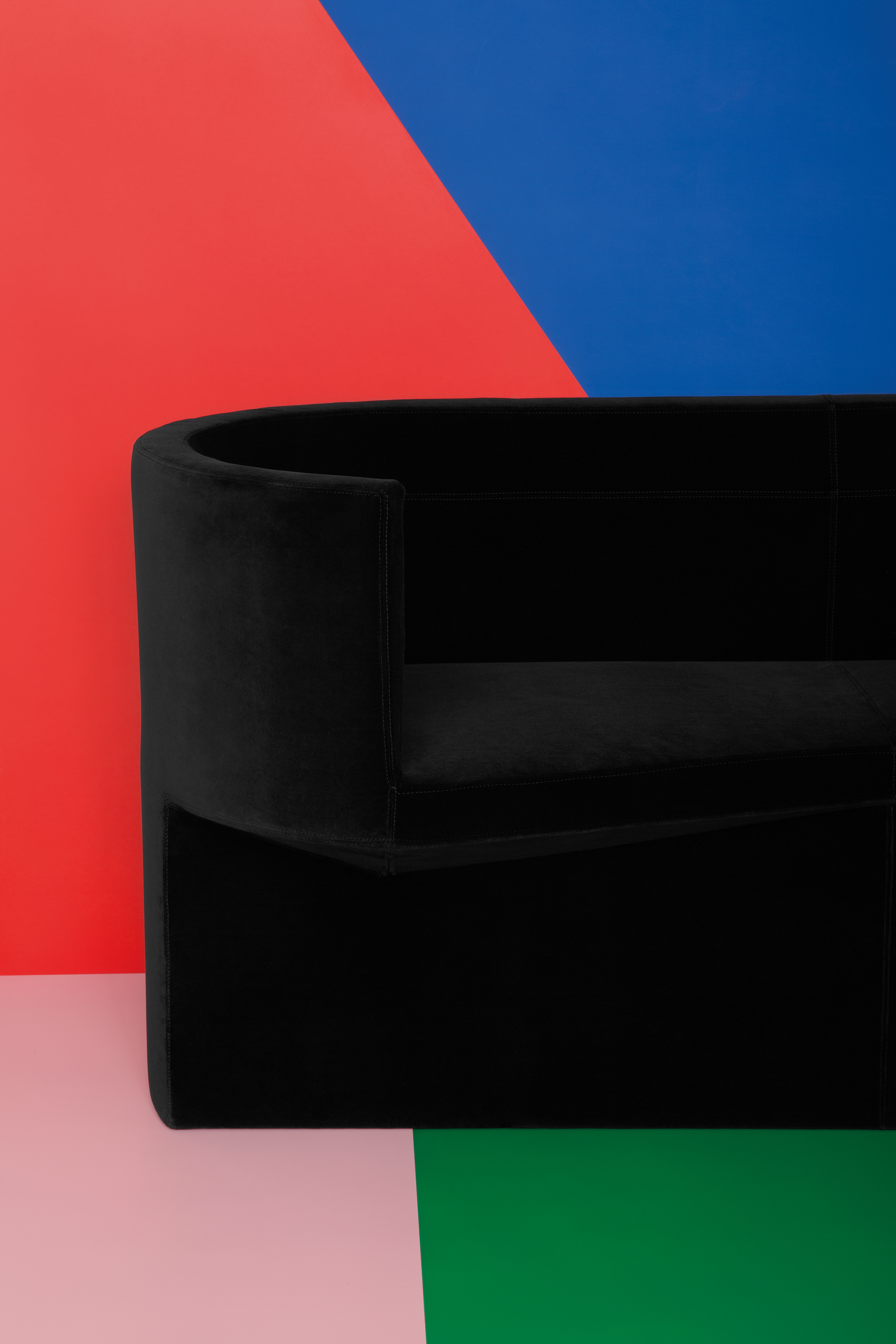 Wie bei ihren eigenen Arbeiten auch, konzentriert sich Shirana Shahbazi bei den Fotos der Black Edition auf die Aufhebung der Realität, klar definierte Formen und Dimensionen. Ihre Aufnahmen vor schwarzem Hintergrund zeigen die klare Linearität der Entwürfe von Grcic rein durch Lichteinfall und Perspektivenwechsel – und lassen so ein spannendes Wechselspiel mit dem monochromen Hintergrund entstehen. Im Kontrast zu den farbigen Elementen wiederum abstrahiert Shahbazi die Dreidimensionalität der Möbel zu einer leuchtenden Komposition, welche die einzelnen Formen von Dreiecken, Quadraten und Winkeln in angrenzende Flächen zerlegt.