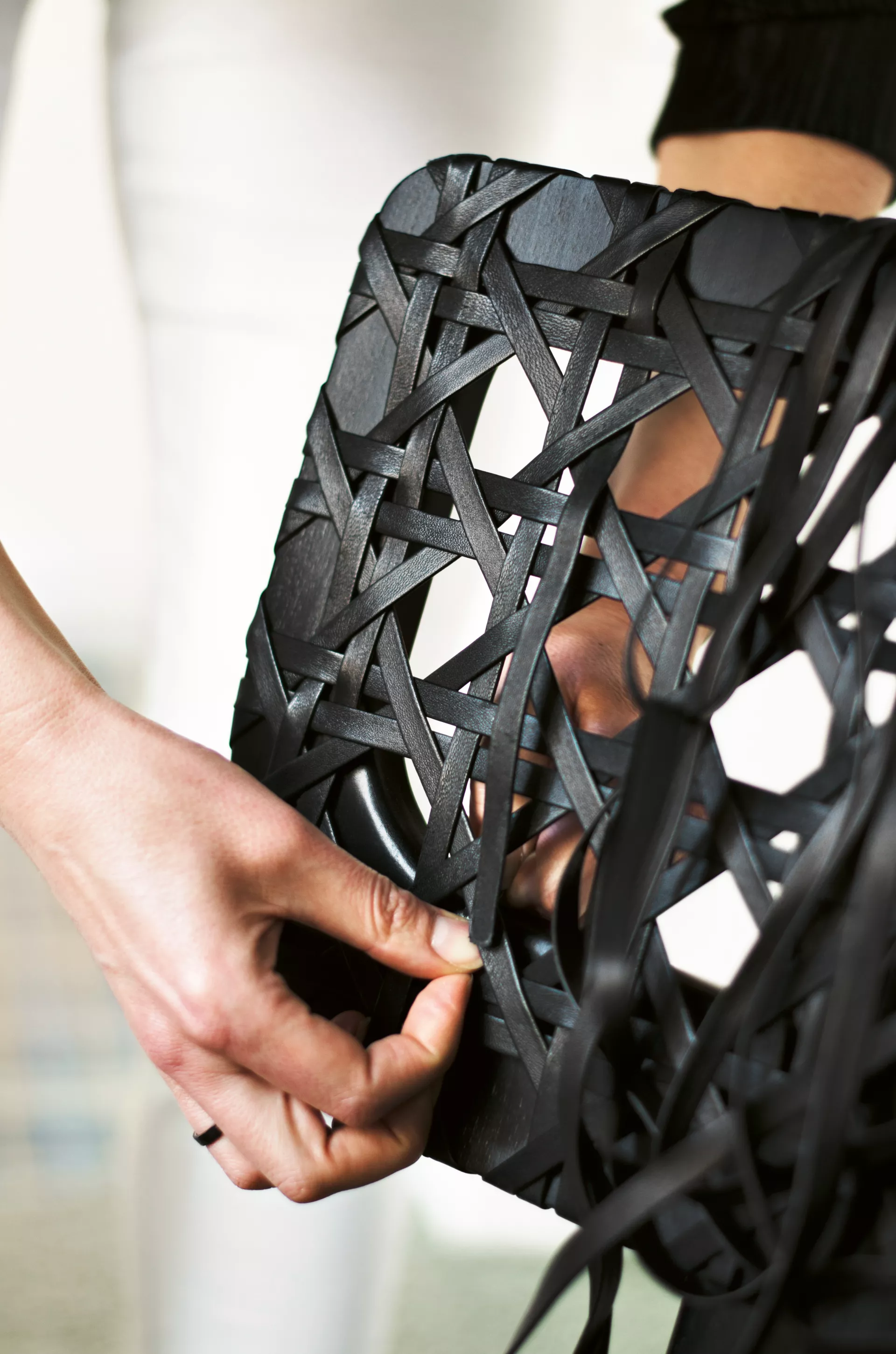 Es bedarf großen handwerklichen Könnens die Jahrhunderte alte Technik des Flechtens in diesem Format mit Lederbändern auszuführen. Verstärkt wird das grafische Erscheinungsbild des Musters noch durch den optionalen Einsatz von zwei Lederfarben. Aërias ist ein anpassungsfähiger Begleiter unterschiedlichster Tische in privatem oder öffentlichem Raum. Er eignet sich aber auch als attraktiver Solitär, dessen Flechtwerk ein interessantes Schattenbild auf seine Umgebung wirft.