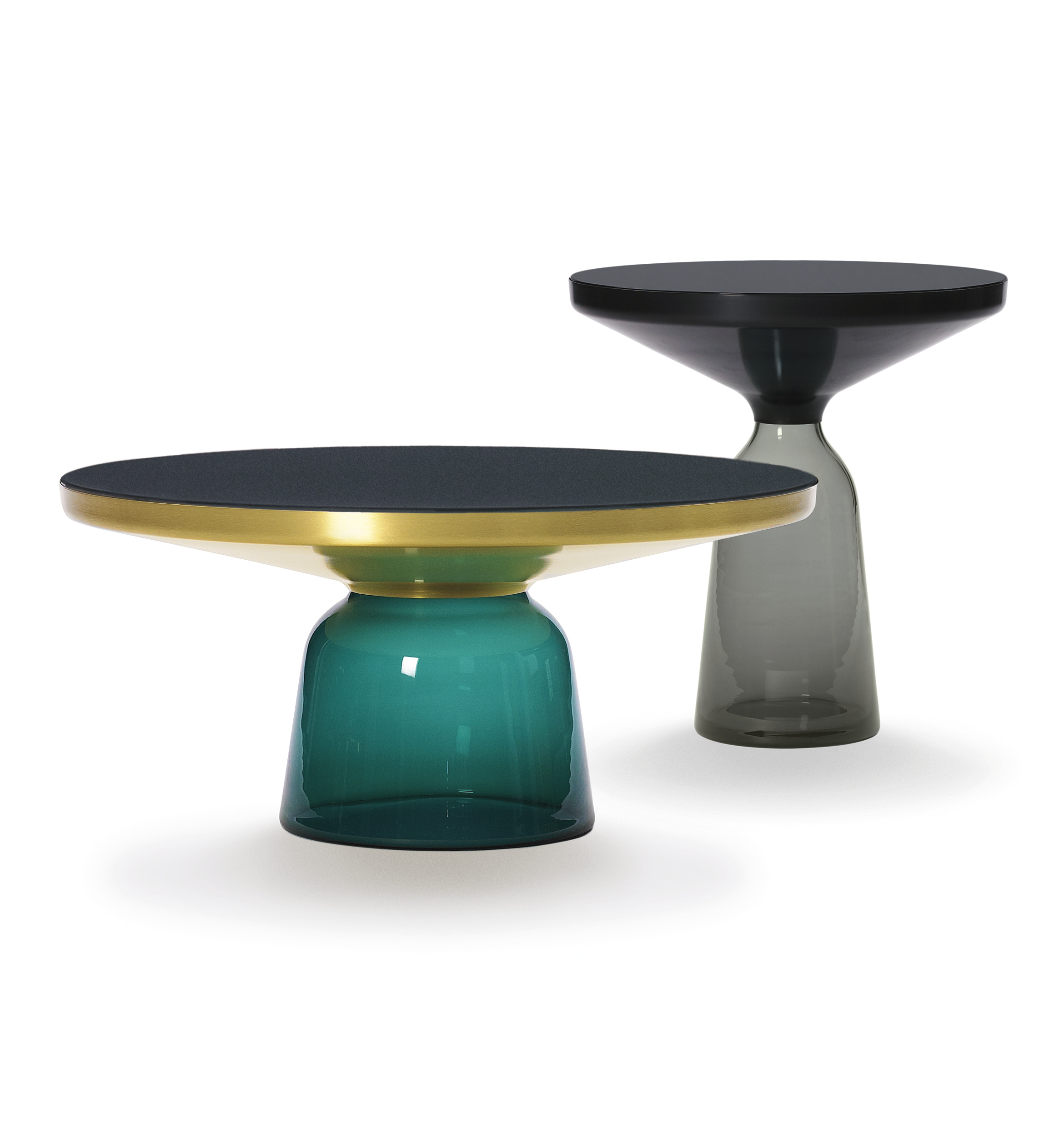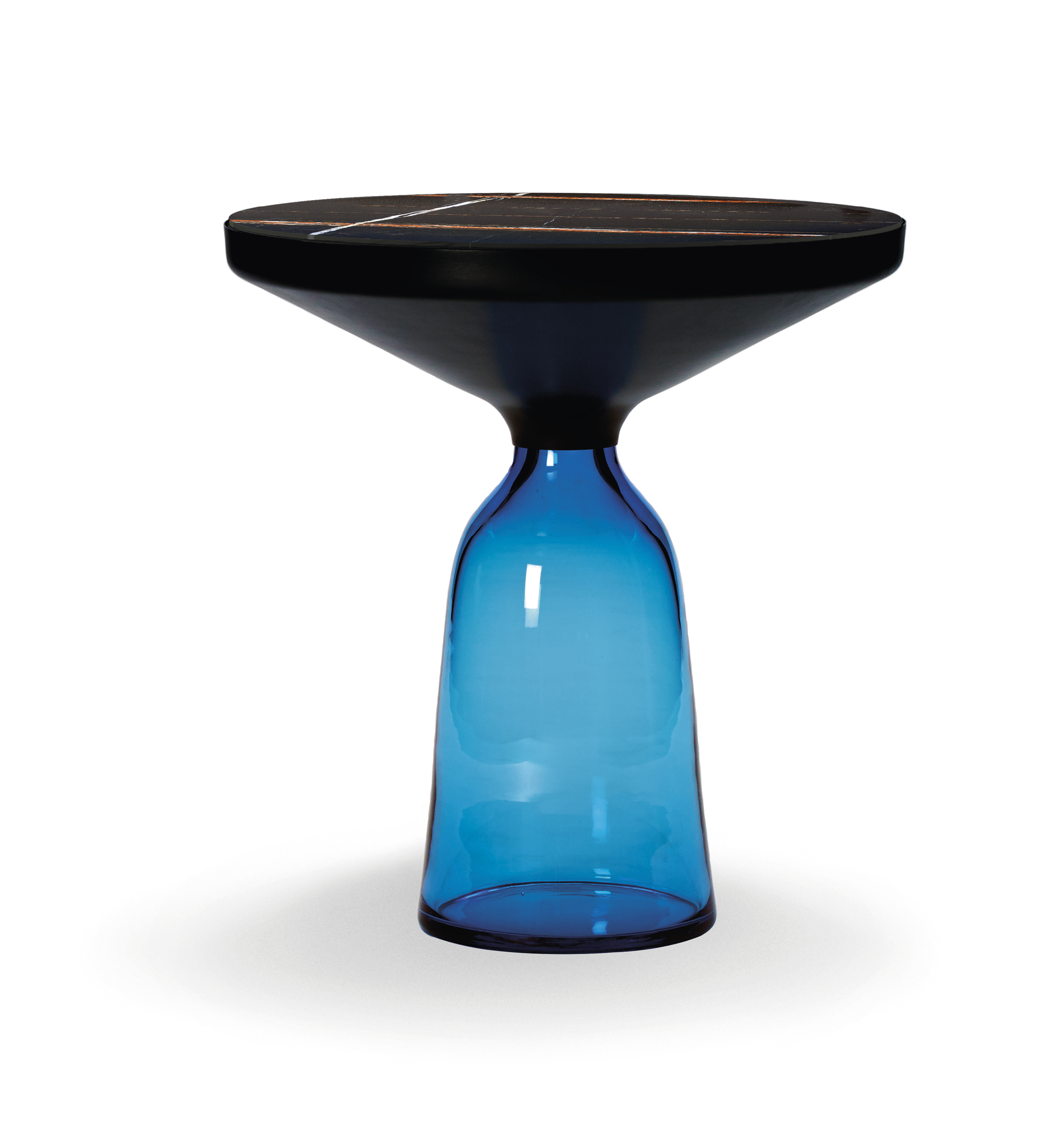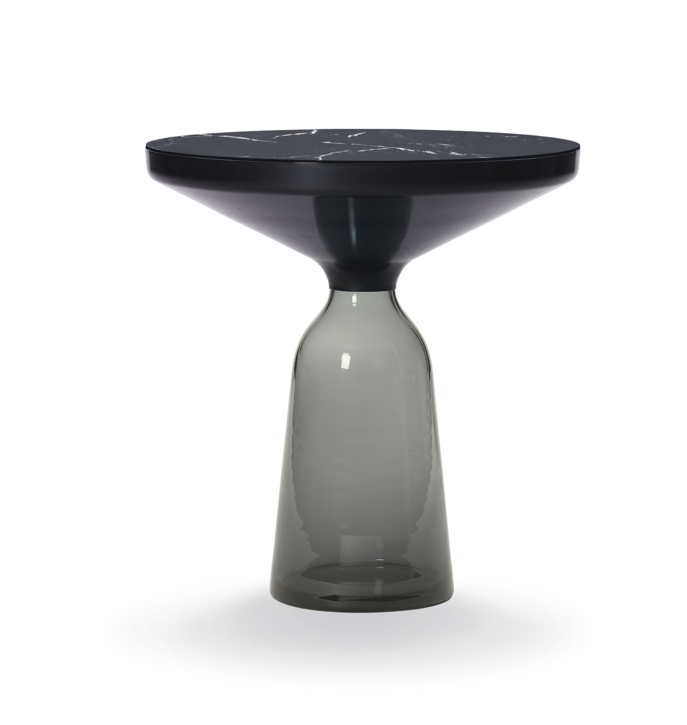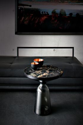 Mit ihren reizvollen Reflexionen und Materialkontrasten werden die Beistelltische zu charakterstarken Elementen im Wohnbereich. Sie zelebrieren die Schönheit der Materialien, ihrer Farben, Oberflächen und der handwerklich-traditionellen Verarbeitung. Der Bell Table von Sebastian Herkner ist ein Meisterwerk traditioneller Handwerkskunst. Jeder Tisch ist handgefertigt, mit den typischen Merkmalen wie unterschiedliche Glasstärken, kleinere Bläschen oder Unebenheiten.