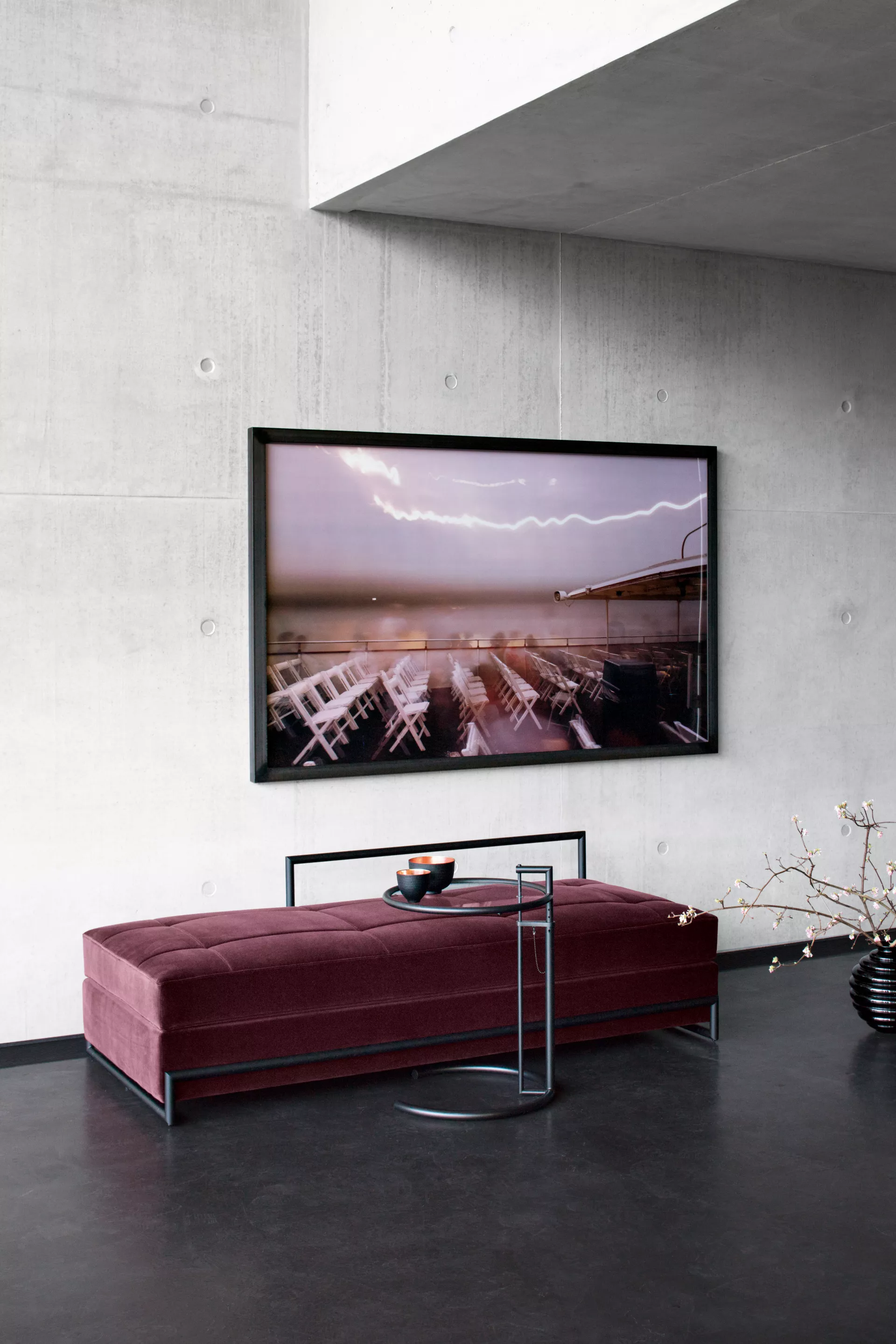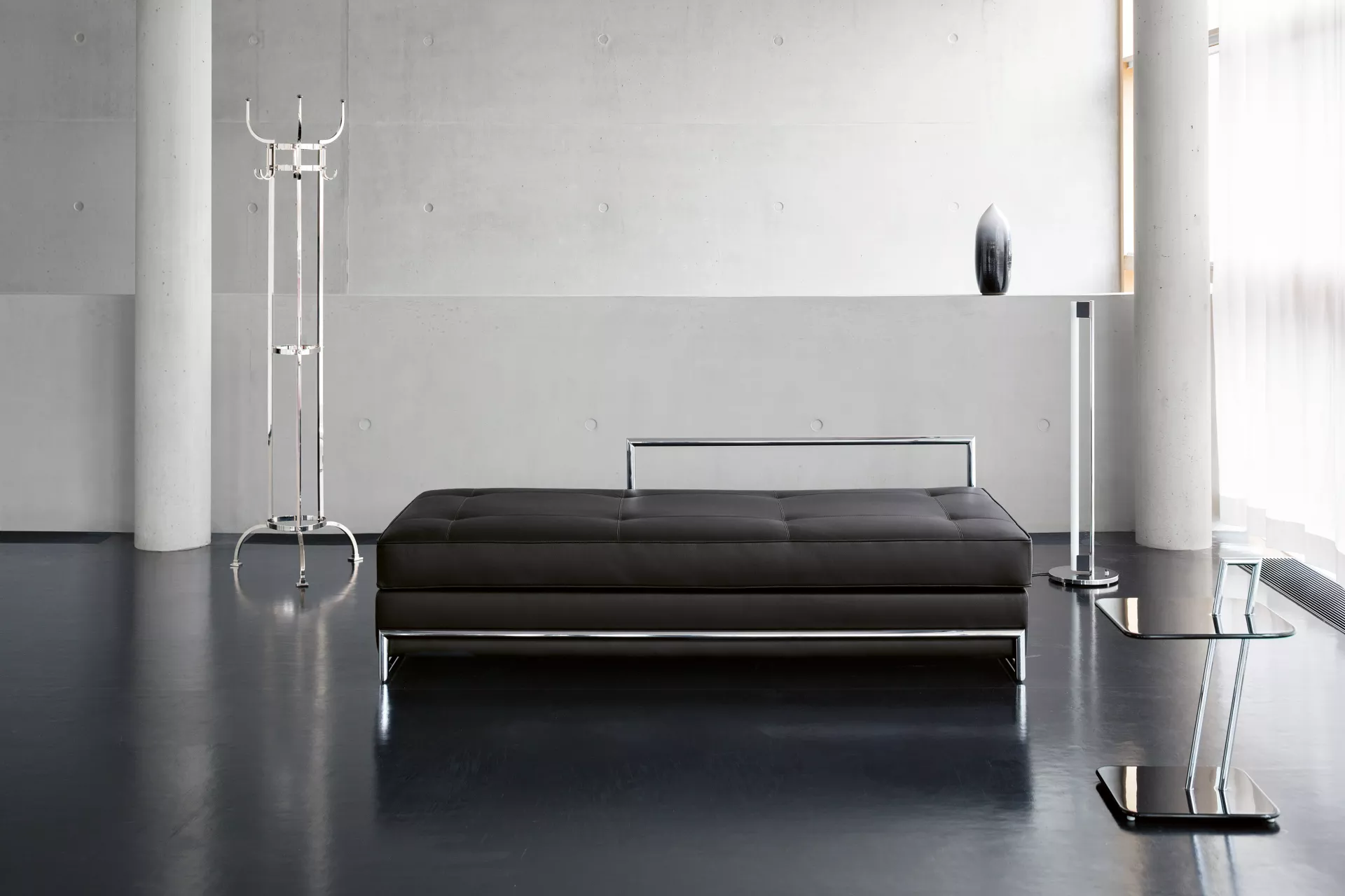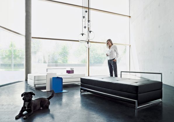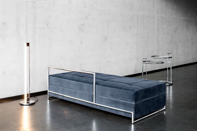 Bereits 2015 legte ClassiCon den Beistelltisch Adjustable Table E1027 als Black Version auf. Diese Anmutung entspricht der von Eileen Gray noch in ihrem Haus E1027 selbst eingesetzten Variante des berühmten Designklassikers. Passend dazu gibt es seit 2019 auch das Day Bed mit schwarzem Gestell.