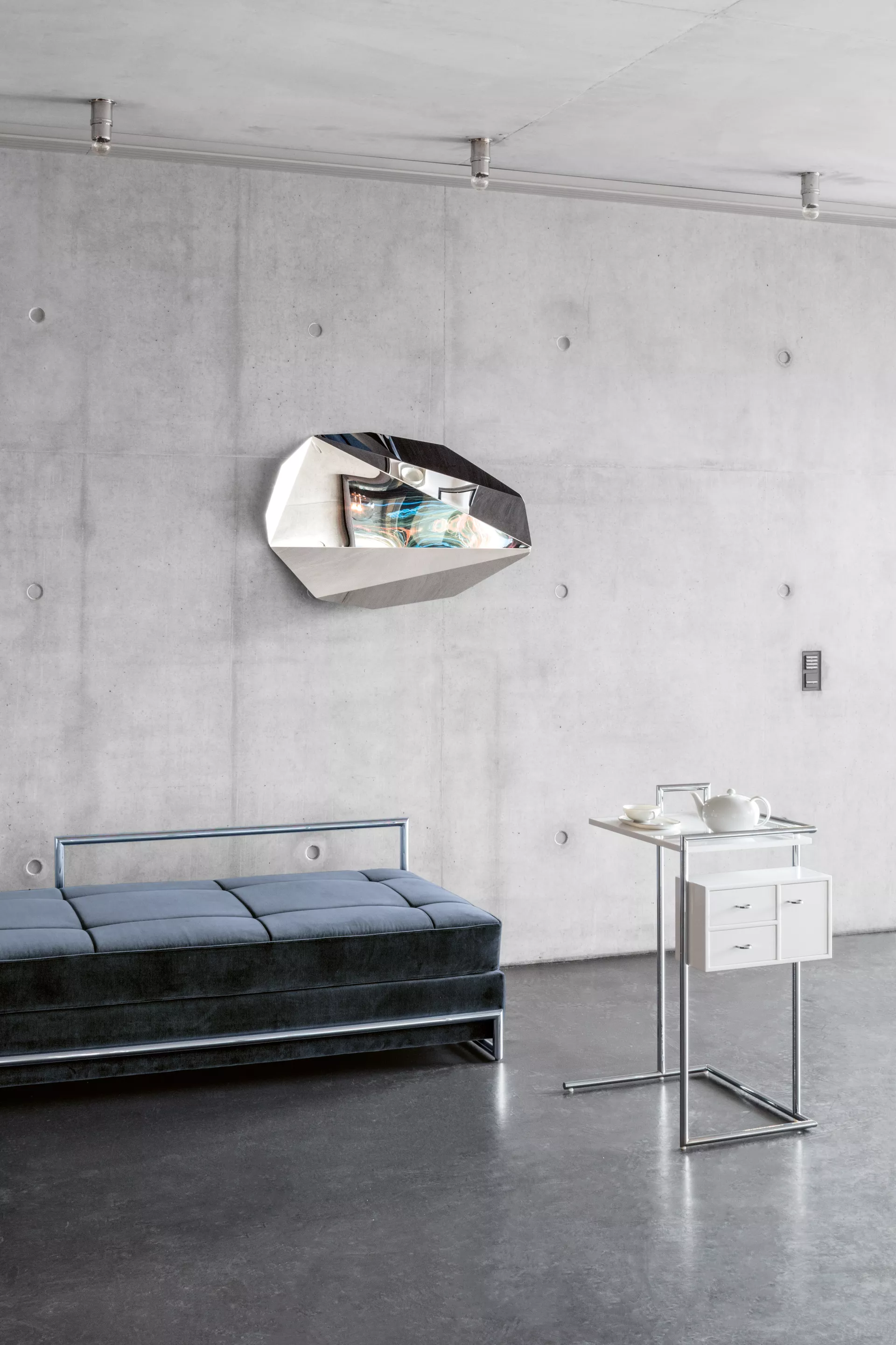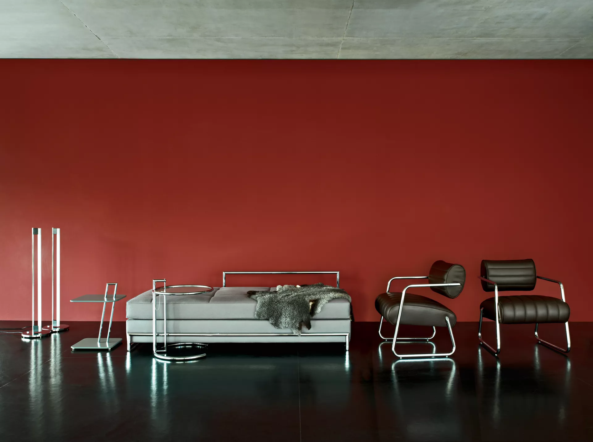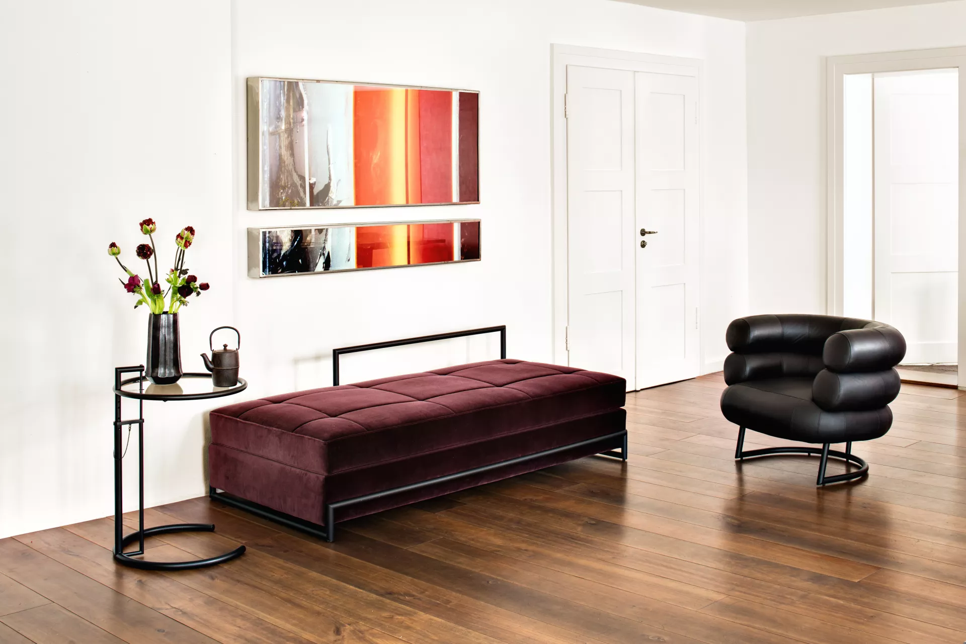 Bereits 2015 legte ClassiCon den Beistelltisch Adjustable Table E1027 als Black Version auf. Diese Anmutung entspricht der von Eileen Gray noch in ihrem Haus E1027 selbst eingesetzten Variante des berühmten Designklassikers. Passend dazu gibt es seit 2019 auch das Day Bed mit schwarzem Gestell.
