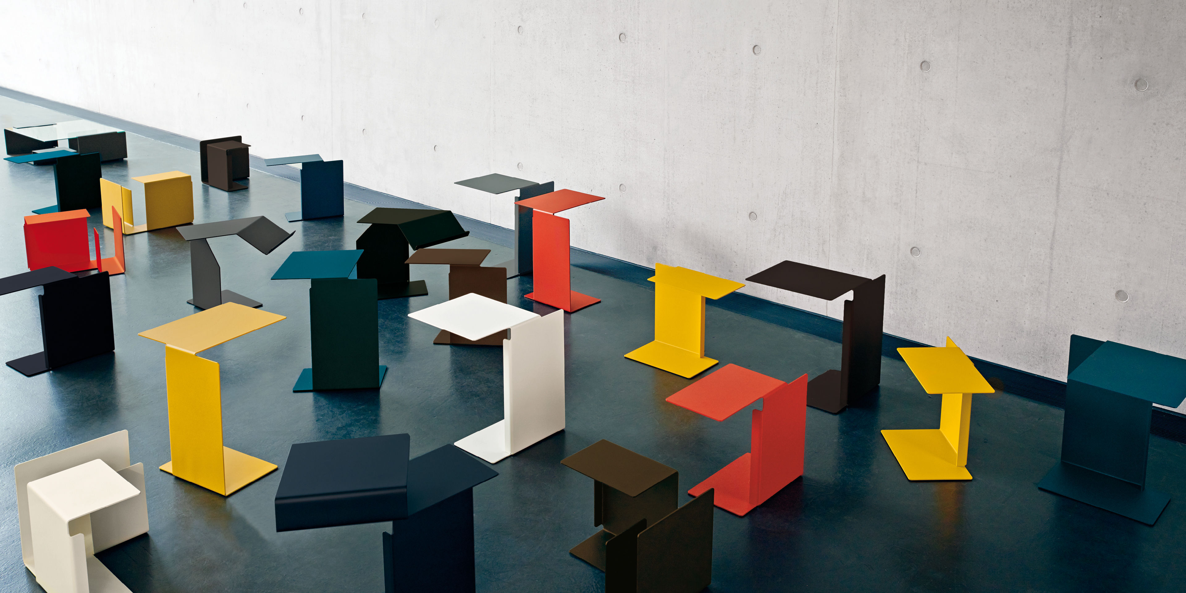 Beistelltisch? Notebookständer? Handbibliothek? Konstantin Grcics Serie von Stahlblechtischen ist offen für viele Interpretationen und Nutzungen – vor allem aber für die Phantasie. Genauso wie aus Buchstaben Worte entstehen, gruppieren sich die Diana-Tische zu immer neuen visuellen Zusammenhängen mit anderen Möbeln und Objekten. Mit dem Diana-Alphabet von A bis F lässt sich ein Wohnzimmer in ein Café verwandeln oder in ein Wort aus einer ganz neuen, ganz persönlichen Sprache.