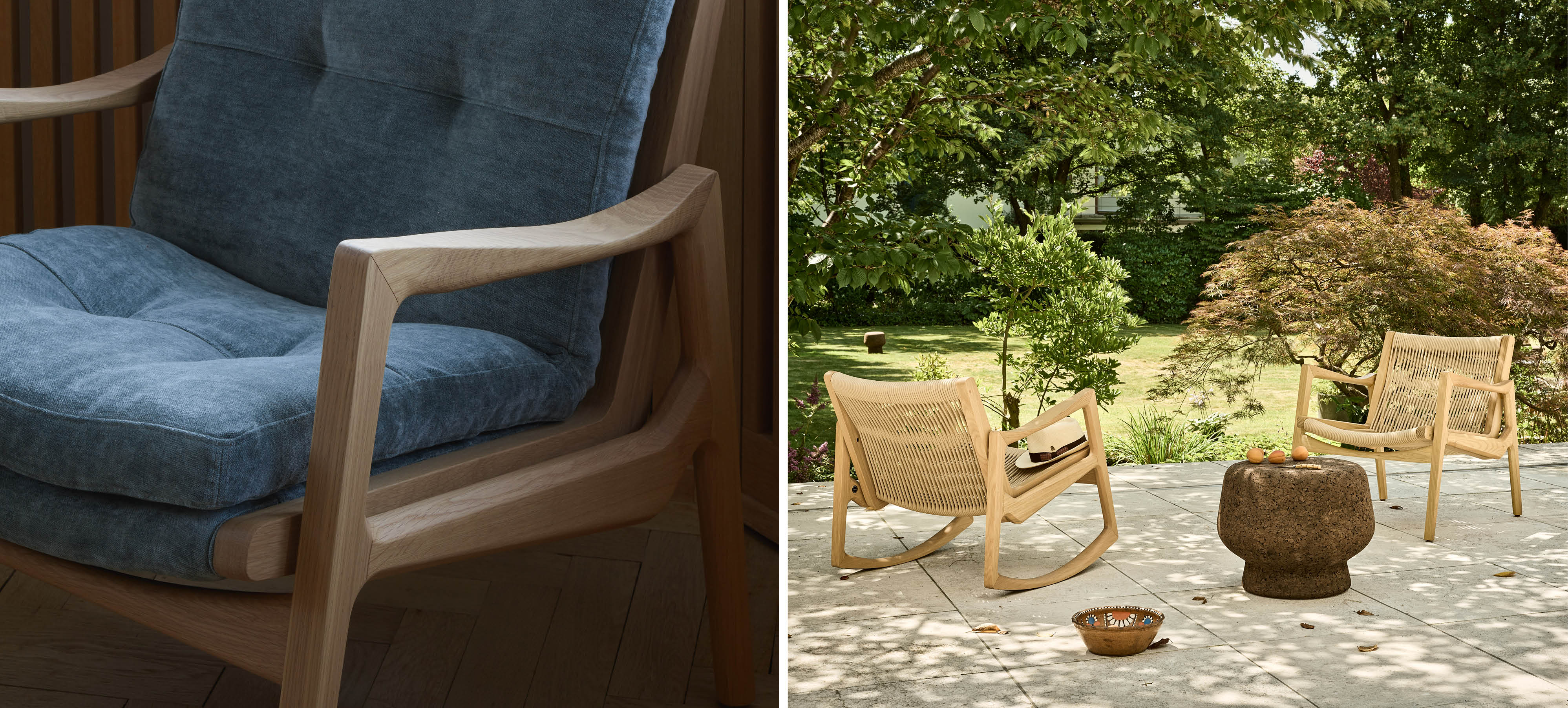 Die Euvira‑Familie wird durch naturbelassene Robinie für den Außenbereich nutzbar und entfaltet dabei ihre klare, elegante Präsenz unter freiem Himmel. Besonders draußen entfaltet der Sessel seine Stärken: Die luftige Kordelbespannung sorgt für angenehmes Sitzen und macht ihn ideal für sonnige Veranden – ein Ausdruck seiner brasilianischen Herkunft.