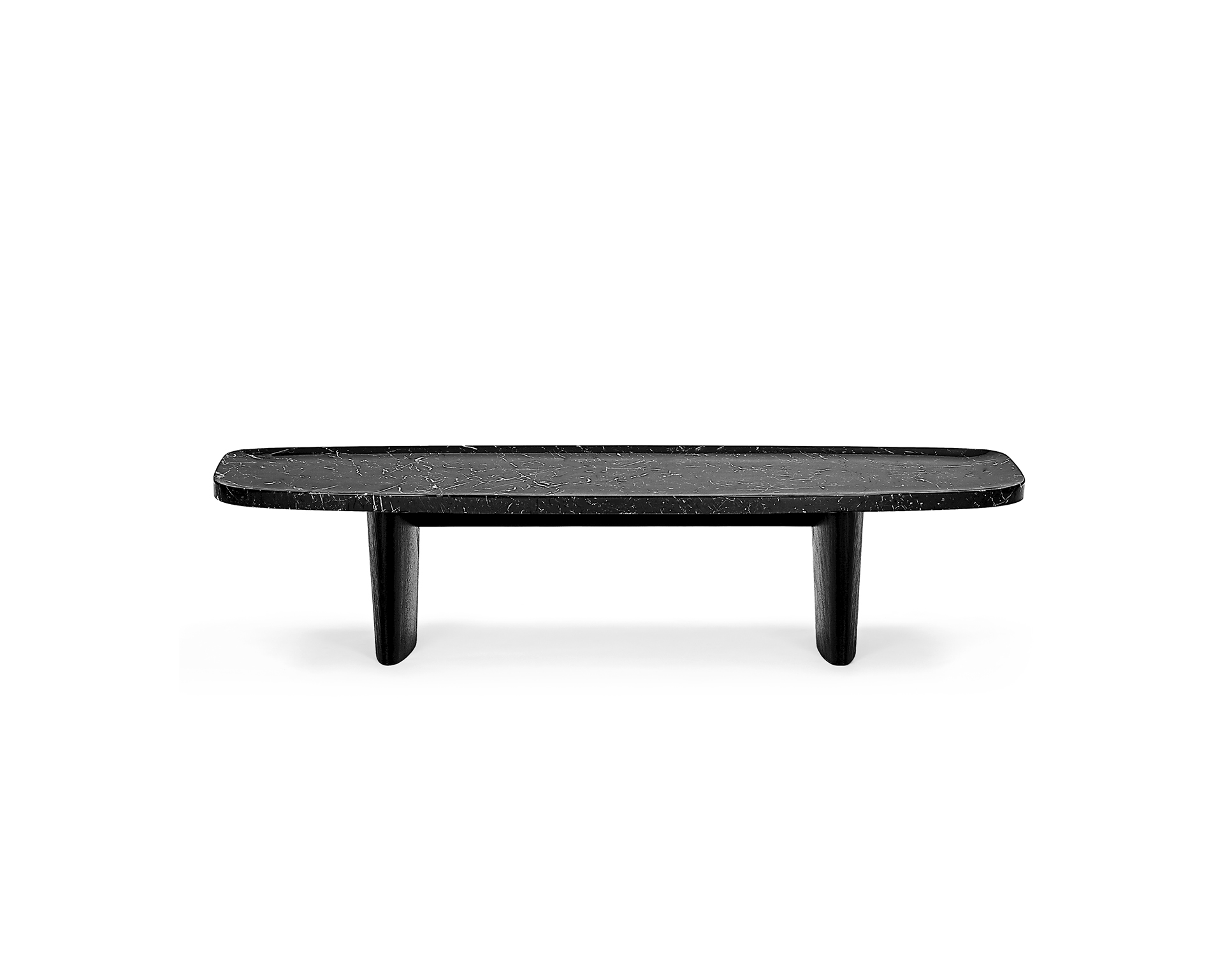 Die Lowboard-Serie Matéria zeichnet sich durch ihre besonderen Dimensionen und zugleich ruhevolle Aura aus. Der ursprünglich rein experimentelle Entwurf des deutschen Designers Christian Haas wurde in Zusammenarbeit mit ClassiCon zu einem Trio erweitert. Einzeln oder in Kombination wirken die handwerklich gefertigten Lowboards in ihrer Materialität für sich und zeigen, wie sinnlich Reduktion wirken kann. Neben den Varianten aus naturfarbenem oder mit Indigo eingefärbtem, offenporigen Travertinstein und hellem Eschenholz ist die Serie in einer tiefschwarzen Version mit Tischplatte aus hochwertigem Nero Marquina und Gestell aus schwarz lackiertem Eschenholz erhältlich. Präsent und beständig, wie eine Skulptur steht das schwarze Marmor-Möbel im Raum und verströmt luxuriösen Flair. Die natürliche Marmorierung des hochglanzpolierten und imprägnierten Natursteins macht aus jedem Exemplar ein Unikat. Beide Versionen von Matéria – aus Travertin oder aus Marmor – bestechen auf ihre jeweils ganz eigene Weise mit ihrer unvergleichlichen, natürlichen Optik, die wie ein abstraktes Gemälde wirkt.