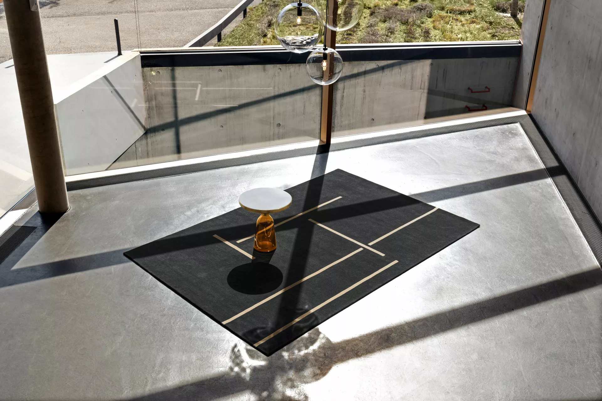 Eileen Gray schuf nicht nur einige der bedeutendsten Möbelklassiker des 20. Jahrhunderts, sondern unterhielt auch ein eigenes Atelier, in dem Teppiche nach ihren Entwürfen hergestellt wurden. Einige ihrer schönsten Designs sind Teil der Teppichkollektion. Die Grundlage von Monolith sind von Eileen Gray gefertigte Gouachen und Bleistiftzeichnungen aus den 1920er-Jahren. Der Entwurf zeichnet sich durch beigefarbene horizontale und vertikale Linien in unterschiedlichen Längen aus, die den erdig anmutenden dunkelgrauen Untergrund elegant akzentuieren. Teilweise kreuzen sich die Linien, ohne sich zu berühren – sie deuten eine Struktur an, die den Teppich in unterschiedlich große viereckige Räume zu unterteilen scheint. Handgeknüpft aus 100% feinster Schurwolle und in höchster Qualität in Nepal gefertigt, ist Monolith ein weiterer beeindruckender Entwurf, der das künstlerischen Schaffen der irischen Gestalterin in den Fokus rückt.