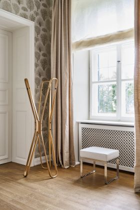 In harmonischem Schwung präsentieren sich die Bögen dieses Garderobenständers, aber er ist so schön, dass man ihn am liebsten leer ansieht.