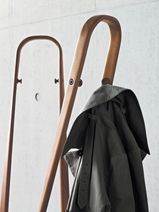 Saturn ist ein so skulpturales, tänzerisch beschwingtes Objekt, dass man es kaum seiner eigentlichen Aufgabe zuführen möchte. Dabei ist Saturn ein perfekter, wenn auch sehr ungewöhnlicher Garderobenständer. Seine großen Holzbögen eignen sich ideal, um Mäntel und Jacken schwungvoll darüber zu werfen oder ihnen auch eine Mütze überzustülpen. Für formelle Anlässe ist Saturn ebenfalls gerüstet: An jedem Bogen sind zwei Metallhaken, an denen man ganz konventionell Kleiderbügel aufhängen kann. Wie es Ihnen gefällt – Sie haben immer das richtige Objekt.