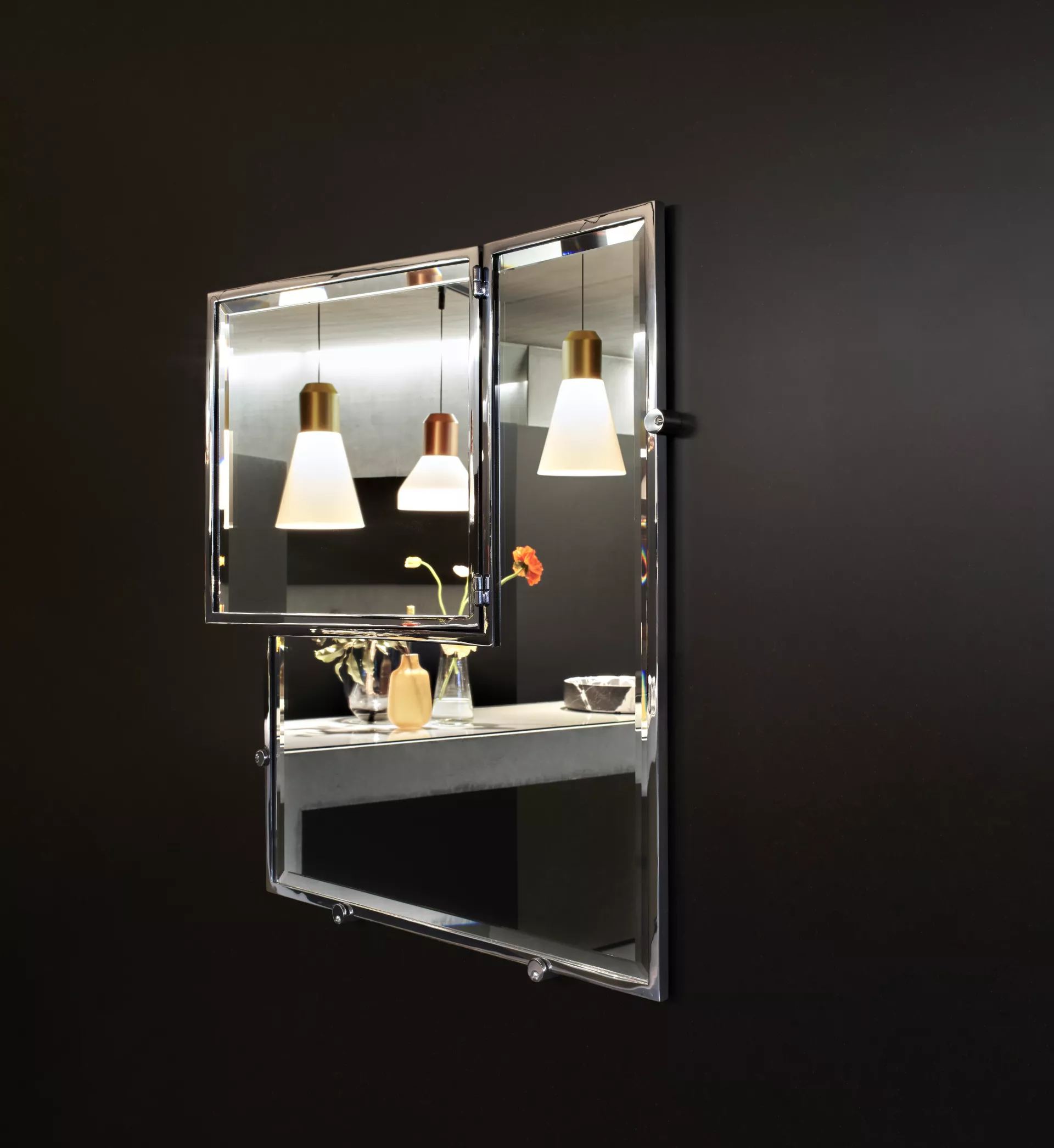 Eileen Gray understood how to combine the aesthetic with the practical as did few designers. The geometrically structured mirror Castellar, designed for her summerhouse E1027, is a proof of this. With Castellar the swivel-mounted section allows you to easily view your profile. Everything is reduced to the essentials, but it is all within easy reach.