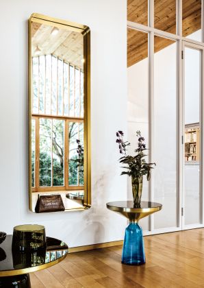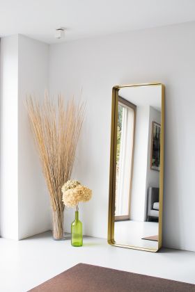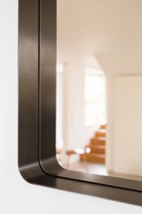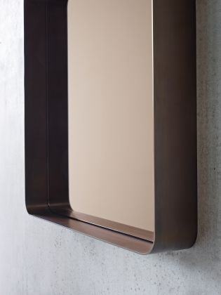 The Cypris Mirror, which resulted from a cooperation between ClassiCon and Austrian architect Nina Mair, is a mirror that is reminiscent of 1950s elegance with its harmoniously shaped radii and brass as a material – and yet it is an absolutely contemporary design. The generous depth of the surrounding brass frame is visually doubled in the mirror and gets a special formal conciseness while remaining a fine, elegant line when viewed on edge. Mounted on the wall, the ribbon-like brass frame of the mirror becomes a surface for flacons, cosmetic products or small treasures, which receive a perfect frame – a stage that enhances each object. The Cypris Mirror can be used in lobbies or bathrooms, dressing rooms or wardrobes, living rooms or semi-public areas. It is available in various sizes and can be mounted horizontally or vertically, or even leaned against the wall.