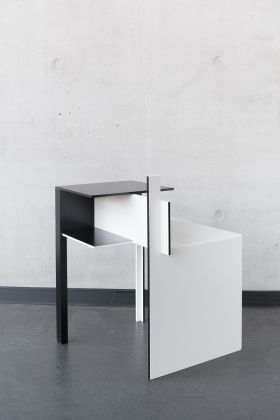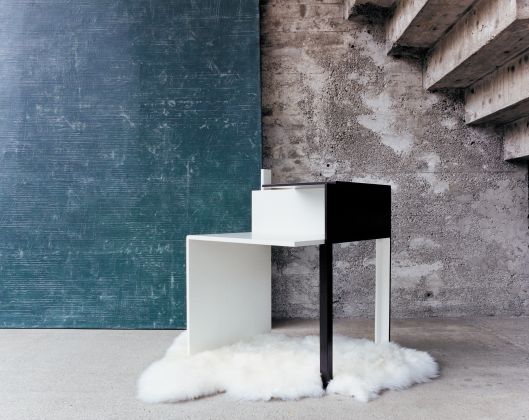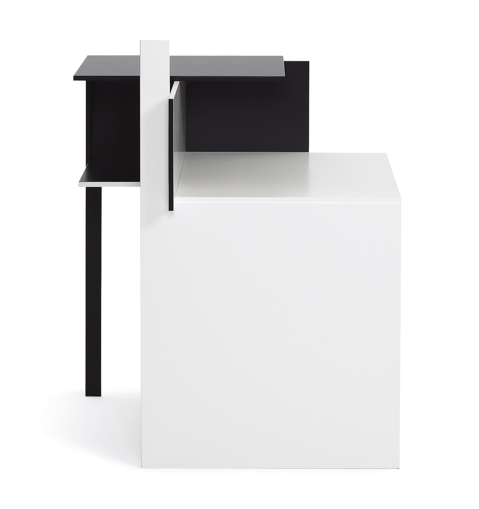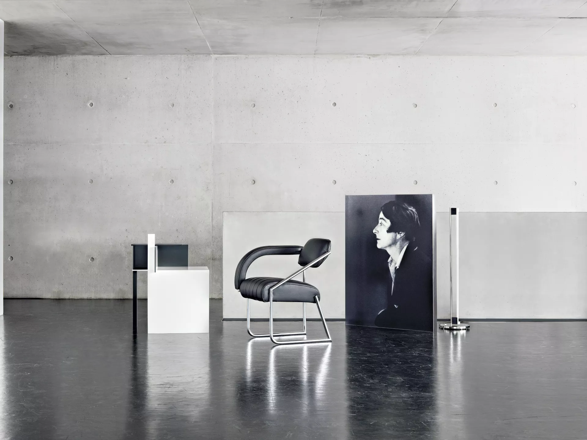 This versatile side table was one of her favourite pieces and stood in her living room up to the time of her death. In 1922 she showed it in Amsterdam at an exhibition of French art. It was no surprise that the small table attracted the attention of the 'De Stijl' architects. The sculptural quality, the use of colour and the logical design are all features of de Stijl. Eileen Gray used it as a tea table. But even in an entrance area or as a night table beside a bed, this solitaire is a spectacular object which takes on surprising new appearances from whatever angle it is viewed.