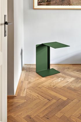 The occasional tables from the Diana series by Konstantin Grcic, crafted from sheet steel, were deliberately designed to remain open to different interpretations and uses. The striking three-dimensional form of the tables is created through just a few clever folds in the metal – no screws, no joints, no additional materials interrupt the pure form. For outdoor use, the Diana B versions are available with a special weatherproof and UV-resistant powder Coating. As with the indoor version, a choice of ten striking colours is available.