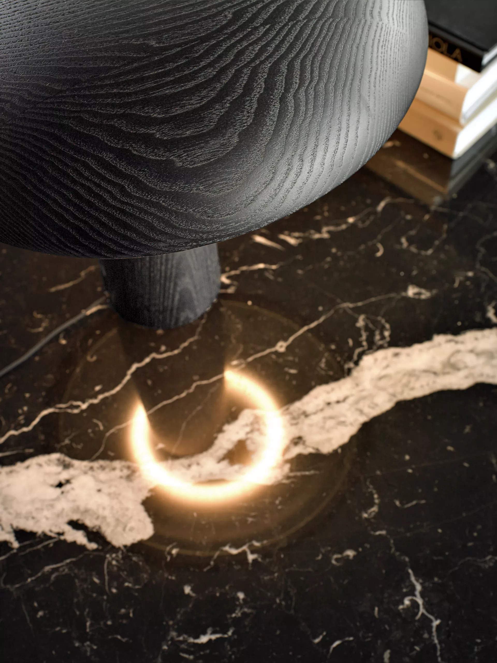 With his Forma design, Christian Haas interprets the 1940s/50s archetype of a classic desk lamp in solid wood. He reduced the original shape without trivialising it and thus created an unmistakable silhouette: the asymmetry of the base and the domed shade of glued solid wood stripes, make the design appear to have grown organically. The inherent warmth and sensuousness of the naturally grown material of which Forma is made, ash or walnut wood, lends the new luminaire its homely character. An almost invisible push button in the base guarantees easy operation. The large, slightly inclined shade with a satinised diffuser panel and a dimmable warm white LED ring provides pleasant, glare-free light. Forma is versatile and cuts a fine figure on a desk as well as on a sideboard, shelf or bedside table.