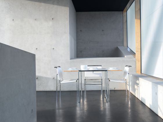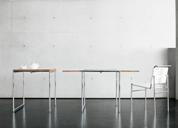 Jean, named after Eileen Gray‘s intimate friend of many years, the architect Jean Badovici, stood in various models in their summer villa E 1027. "Every room has at its disposal one of these tables", wrote Eileen Gray, "that at the same time can serve as a desk. For entertaining one moves all the pieces together, unfolds them and what follows is a small dining table, light yet absolutely stable." There is nothing more to say.