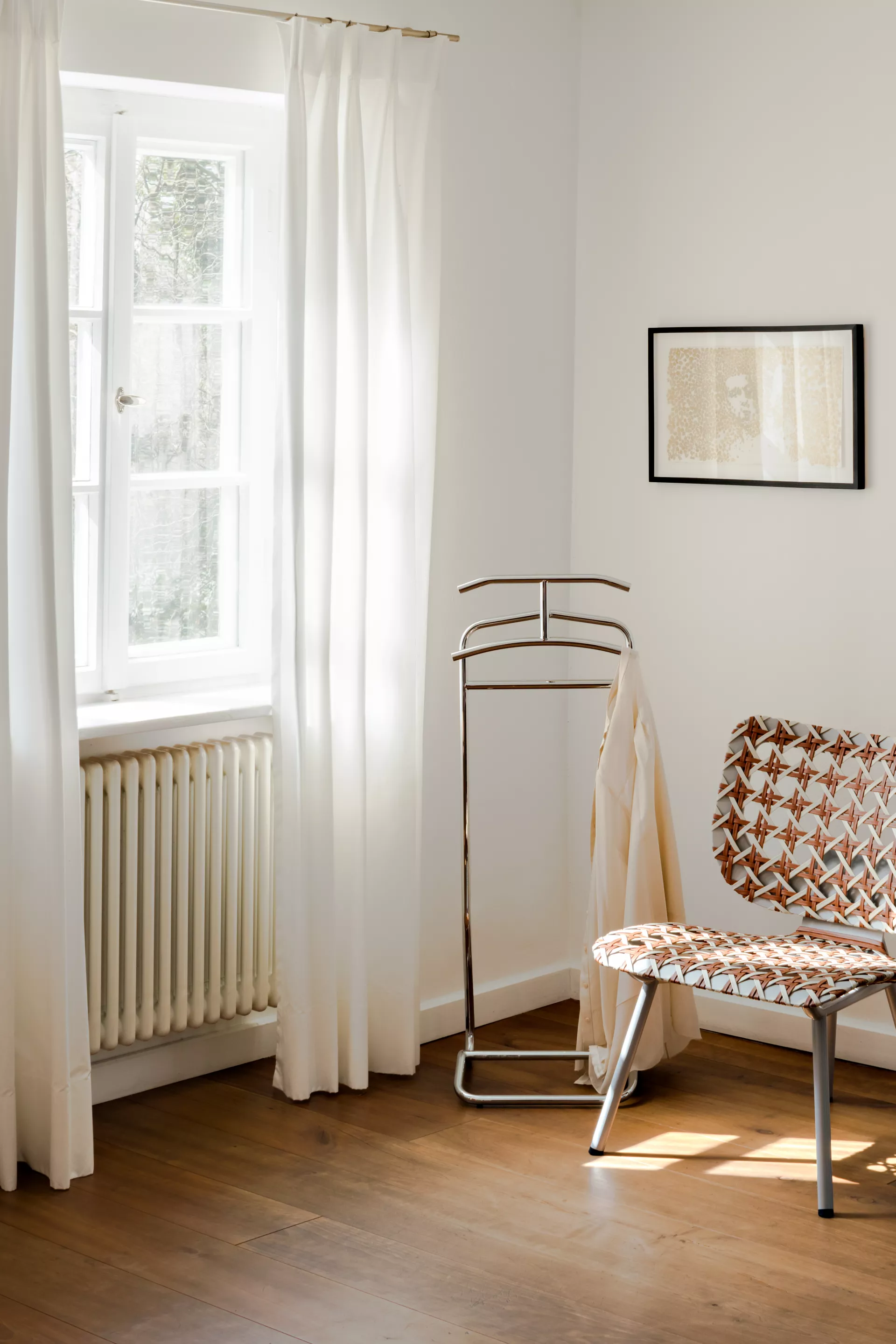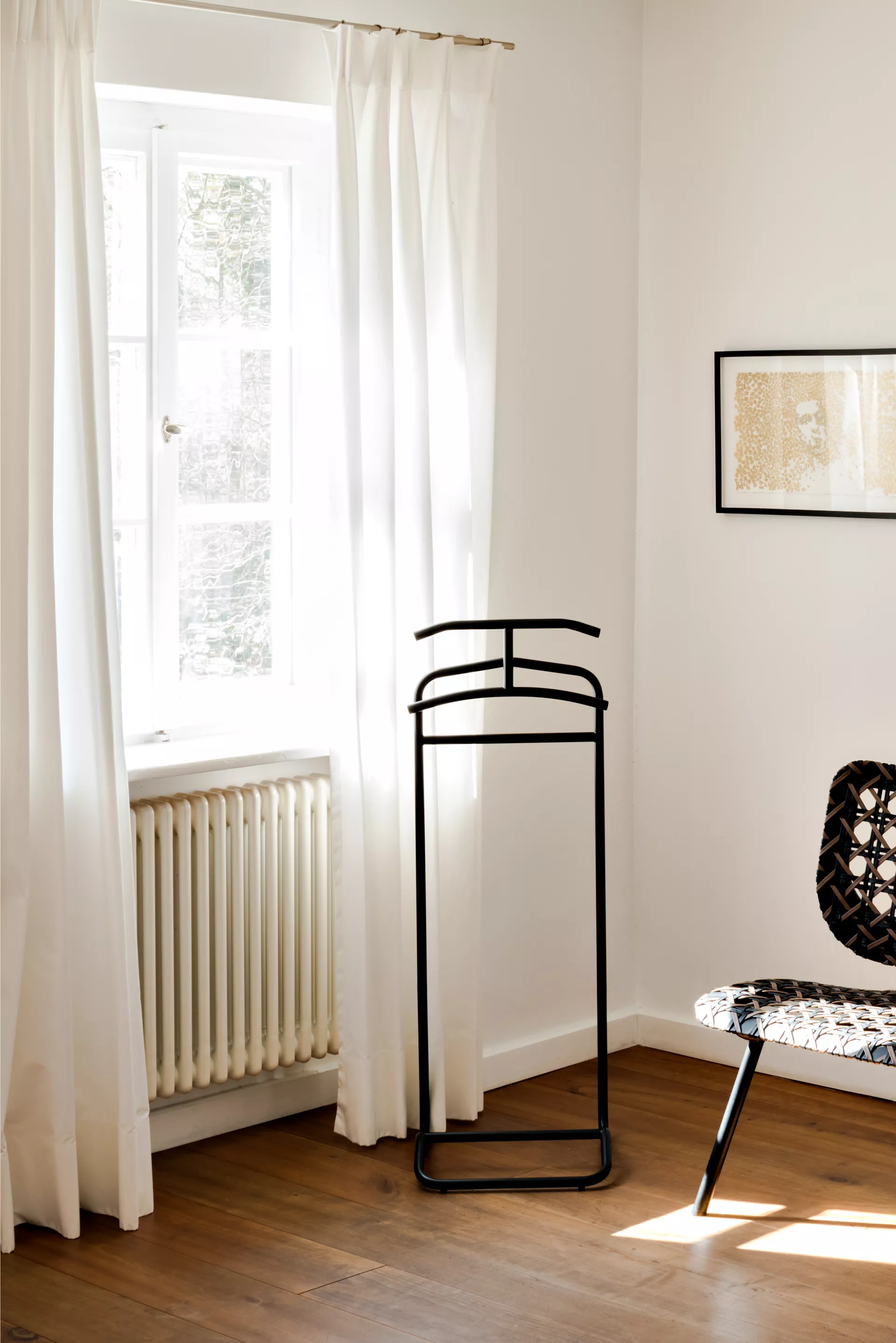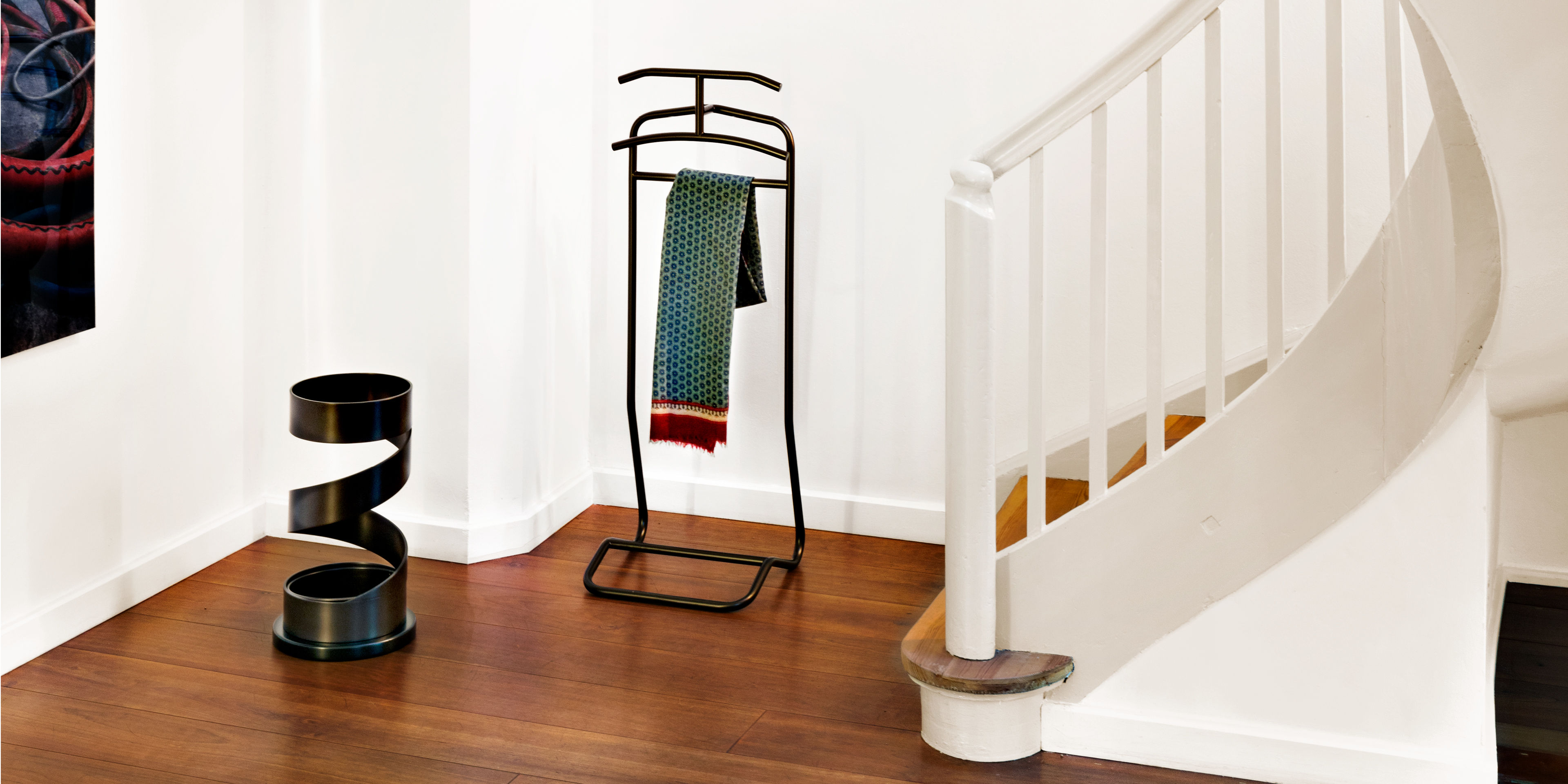 The Maharajah had countless servants. Eckart Muthesius added to them yet another: his valet Mandu serves up an elegant appearance with typical Art Déco flourish. Very feminine and yet – or perhaps for this reason – used mostly by gentlemen who do not want to entrust their business jackets to a simple coat rack. The original chrome-plated version reflects the environment, whereas the new colours, black and bronze, especially emphasize the lines of the design.
