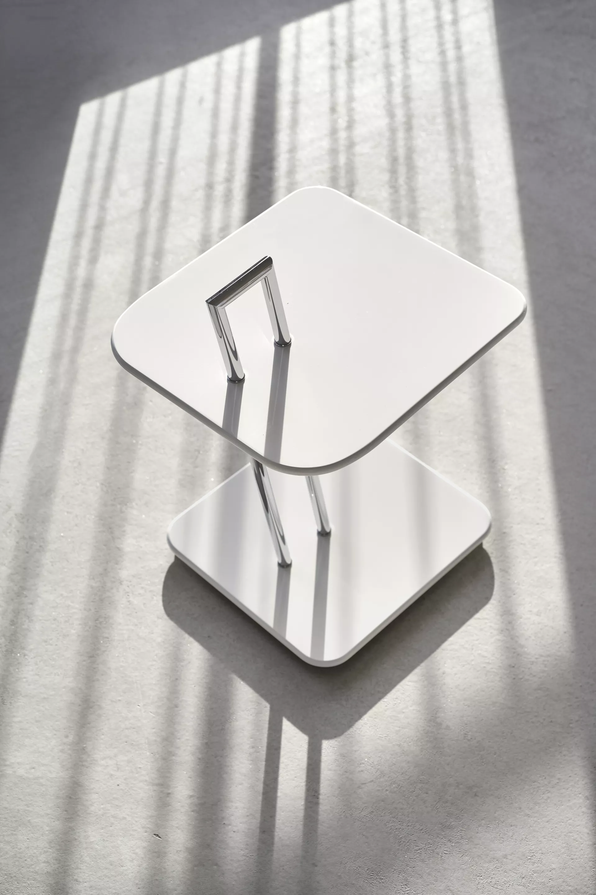 The Latin for furniture, res mobiles, is based on the word mobile. Eileen Gray took this very literally. She loved light, functional furniture that could be moved around easily. One can lift this table "for all occasions" as if it had a handle and carry it exactly to where one needs it. Like the Adjustable Table E 1027, it is constructed with a base that slides under the bedside or armchair. Thus breakfast or bedtime reading is within comfortable reach.