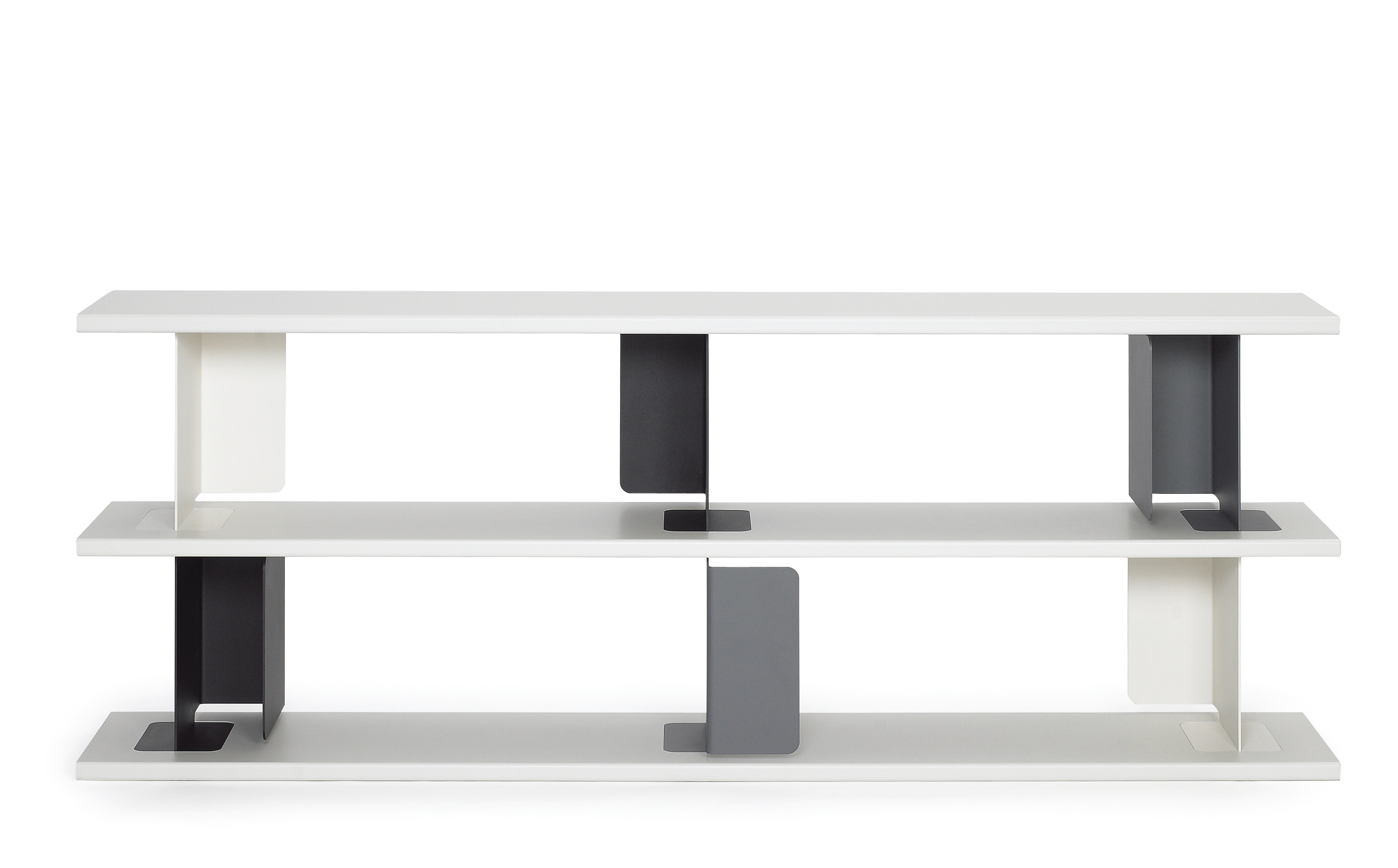 Furnishing is a creative game of possibilities. The shelving unit Paris by the London design team of Edward Barber and Jay Osgerby offers plenty of scope to indulge the urge to play. As the shelves are connected by clip elements which are neither screwed nor permanently fixed, the shelving unit can be regrouped any time with just a few turns of the hand. Thanks to the unusual design, Paris has no rear, only fronts and can thus also be placed standing freely in the centre of a room as a room divider.