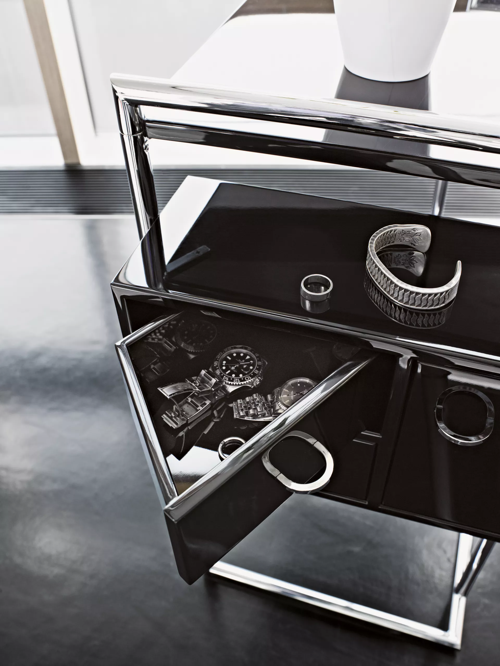 Black high-gloss lacquered