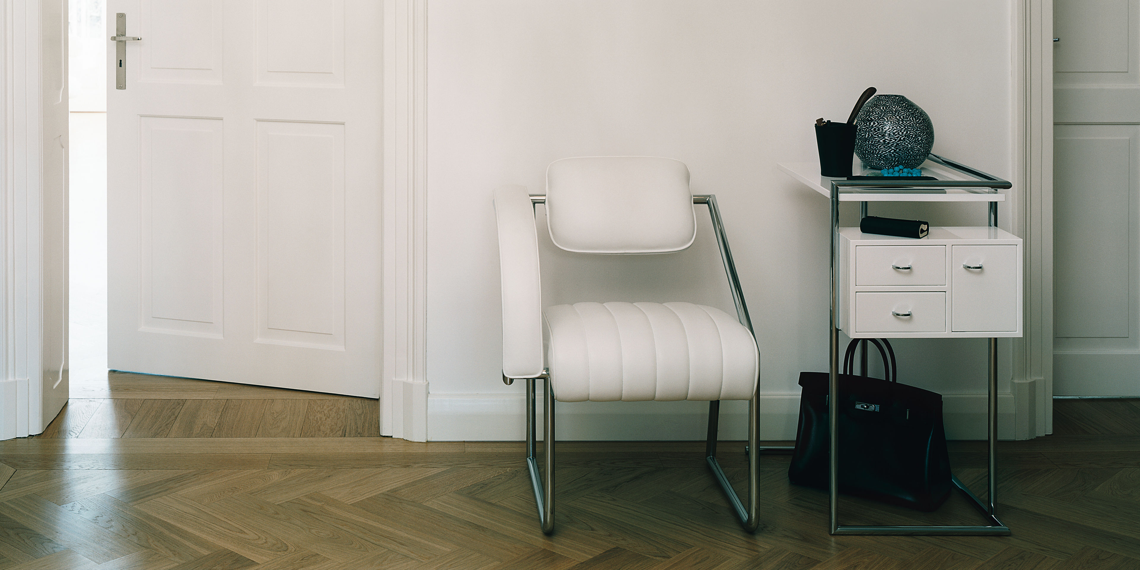 Eileen Gray understood how to combine the aesthetic with the practical as did few designers. The geometrically structured small dressing table, designed for her summerhouse E1027, is a proof