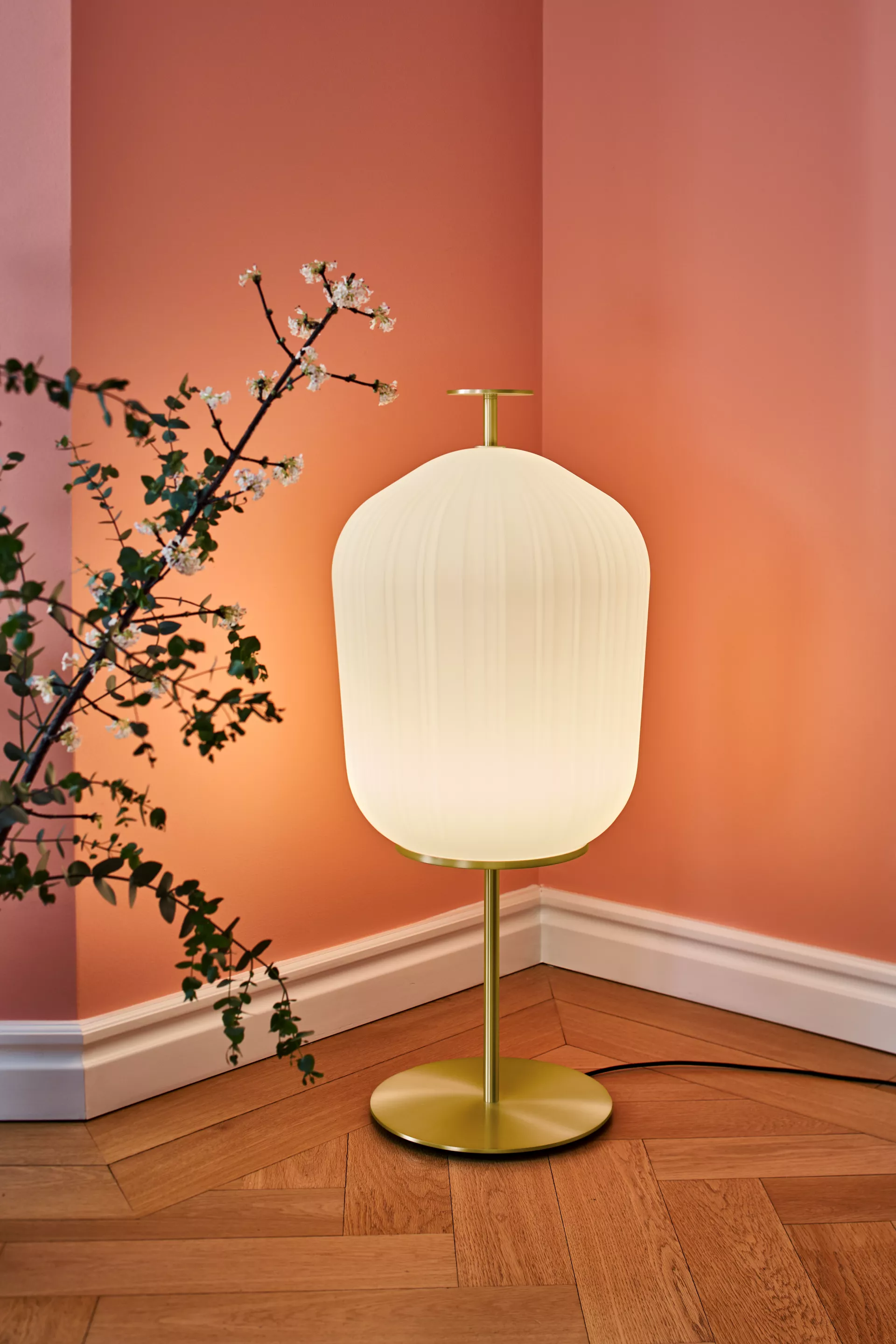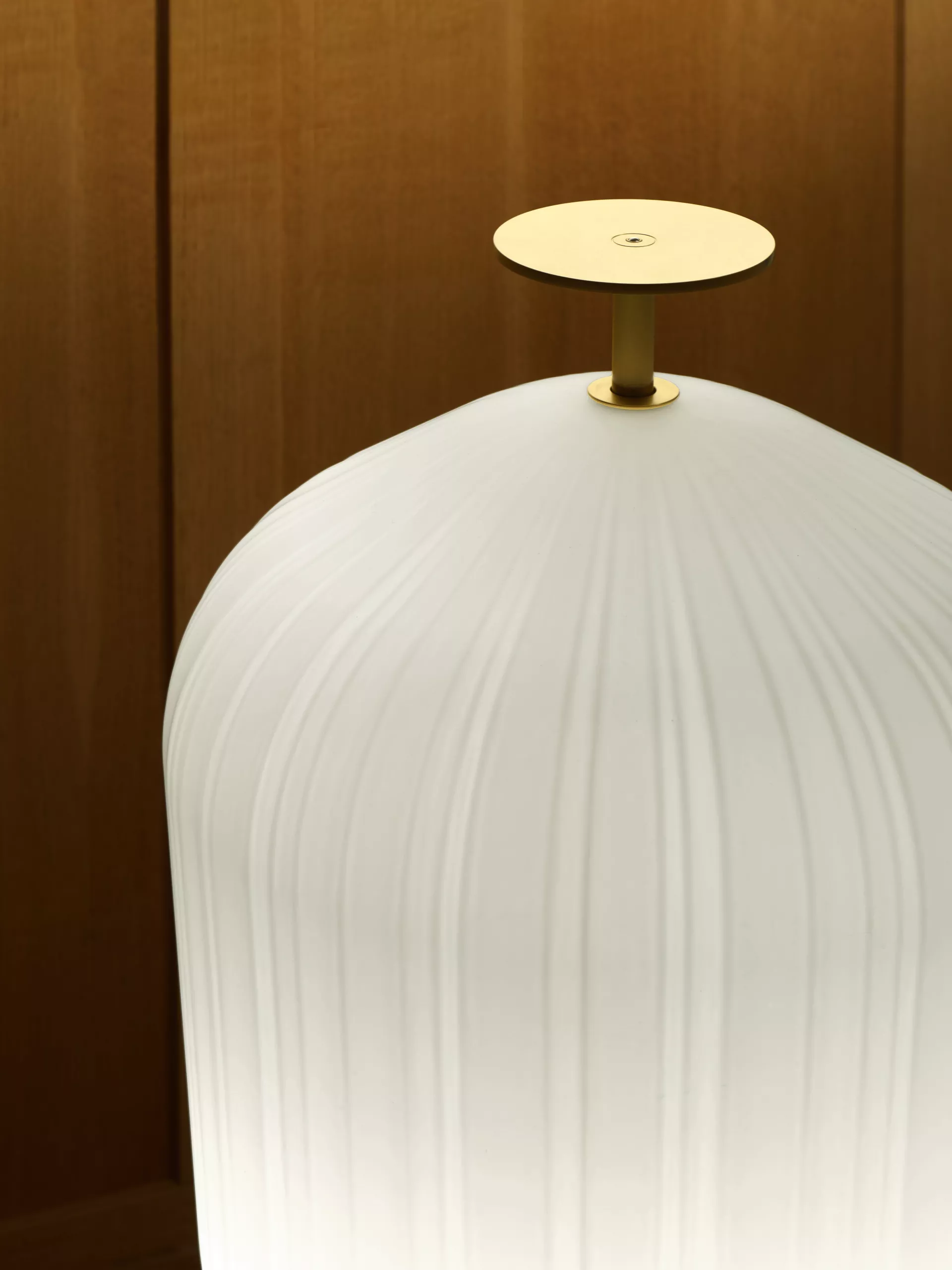 With his Bell Table design, which kicked off his cooperation with ClassiCon in 2012 and was the designer’s first step towards international recognition, Sebastian Herkner turned our usual perception of materials upside down. Herkner once again achieves this effect in a fascinating way with his Plissée Floor Lamp: the lampshade, like a sensual, weightless balloon of light, balances on a metal base. The trick: what is reminiscent of artfully pleated textile is in reality hand-blown glass. An elaborate artisan production process enables this soft, textile-like, visual effect and hence the realisation of Herkner’s vision. A dimmable LED light source creates the individually desired level of cosiness. The design of the Plissee Floor Lamp hence unites traditional craftsmanship with an industrial component – and, not least through this combination, carries the unmistakable signature of Sebastian Herkner.