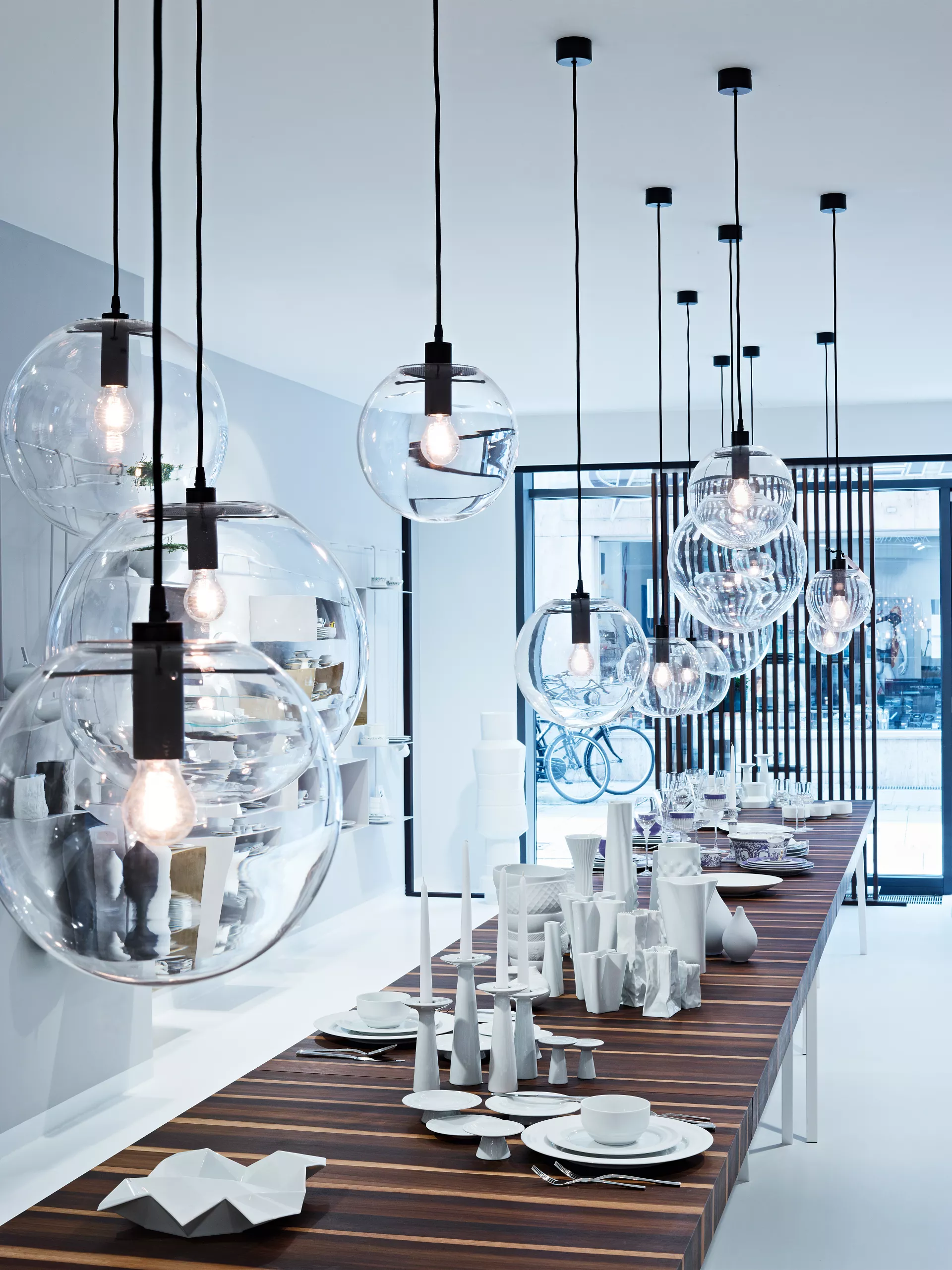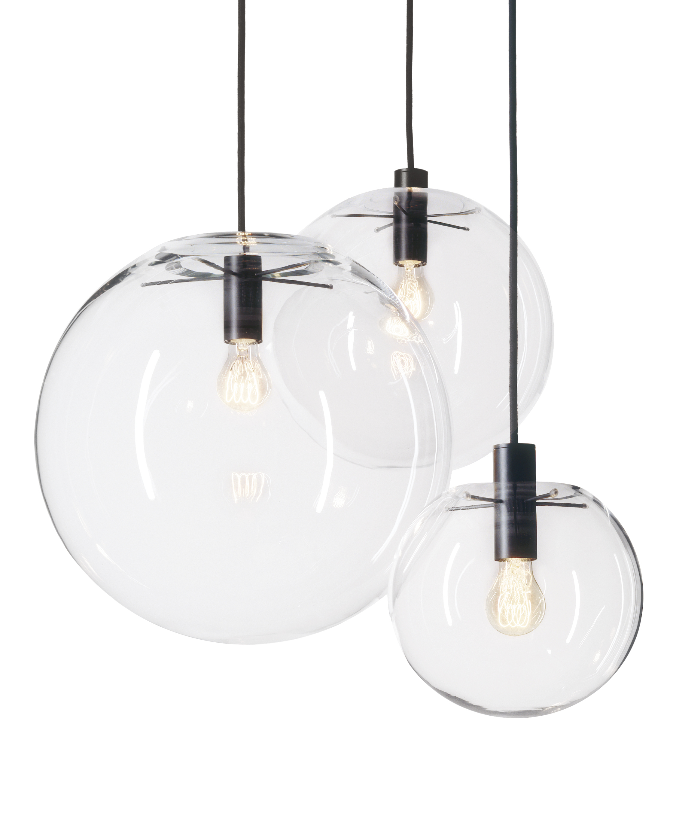 Each of the spheres of the Selene lamp series is hand-made and hand-blown. A process that has not changed over the course of centuries and requires enormous, masterful skills. Reflexions and movements in the glass provide Selene with its special brilliance and vividness. A simply cylindrical socket changes the character of the lamp through varying materials. Alone or in a group suspended in different sizes, Selene offers plenty of design freedom.